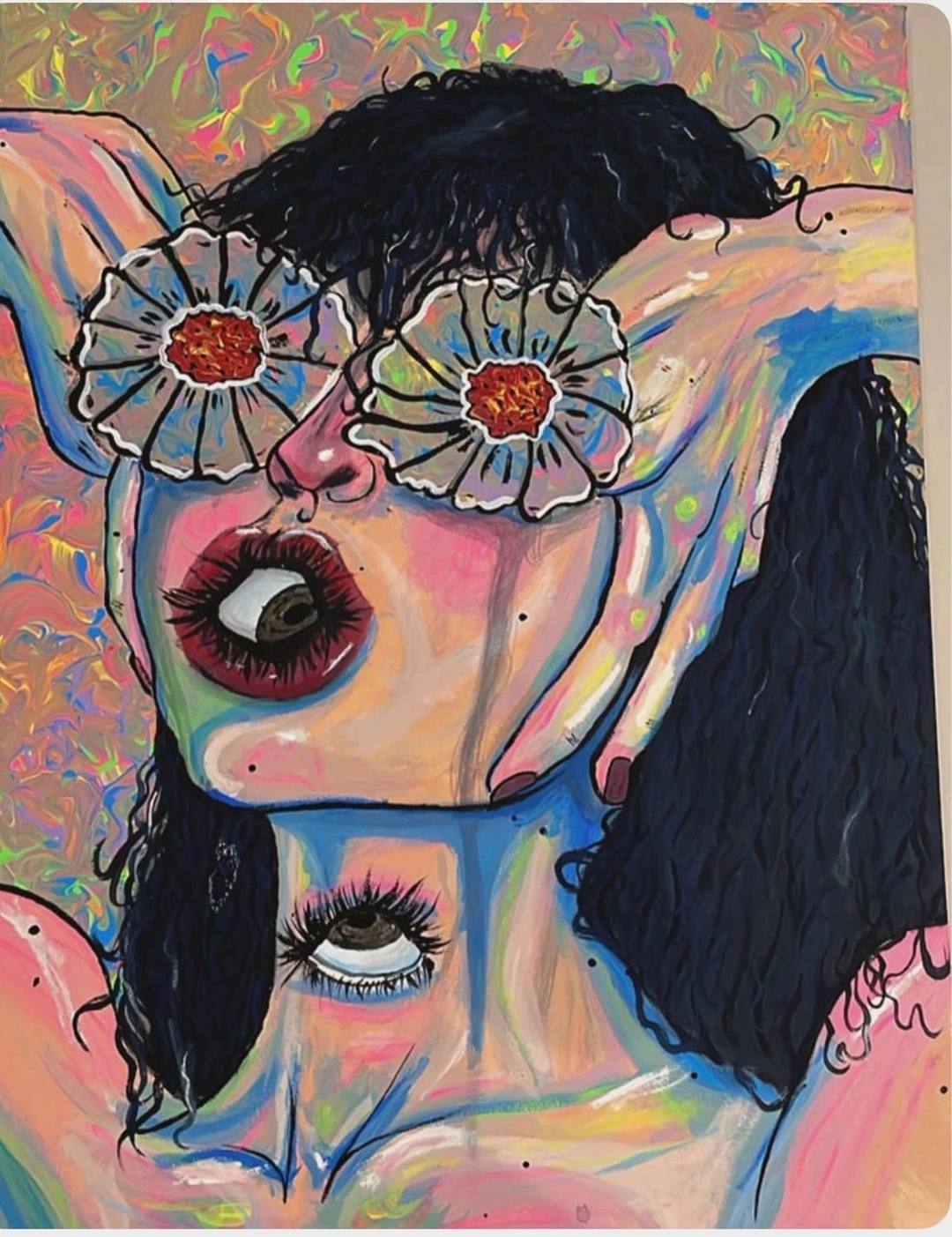 I am a self taught artist who utilizes acrylic paint to display vivid yet animated pieces with a touch of horro. Drawing inspiration from Ed Hardy, anime, and surrealism.