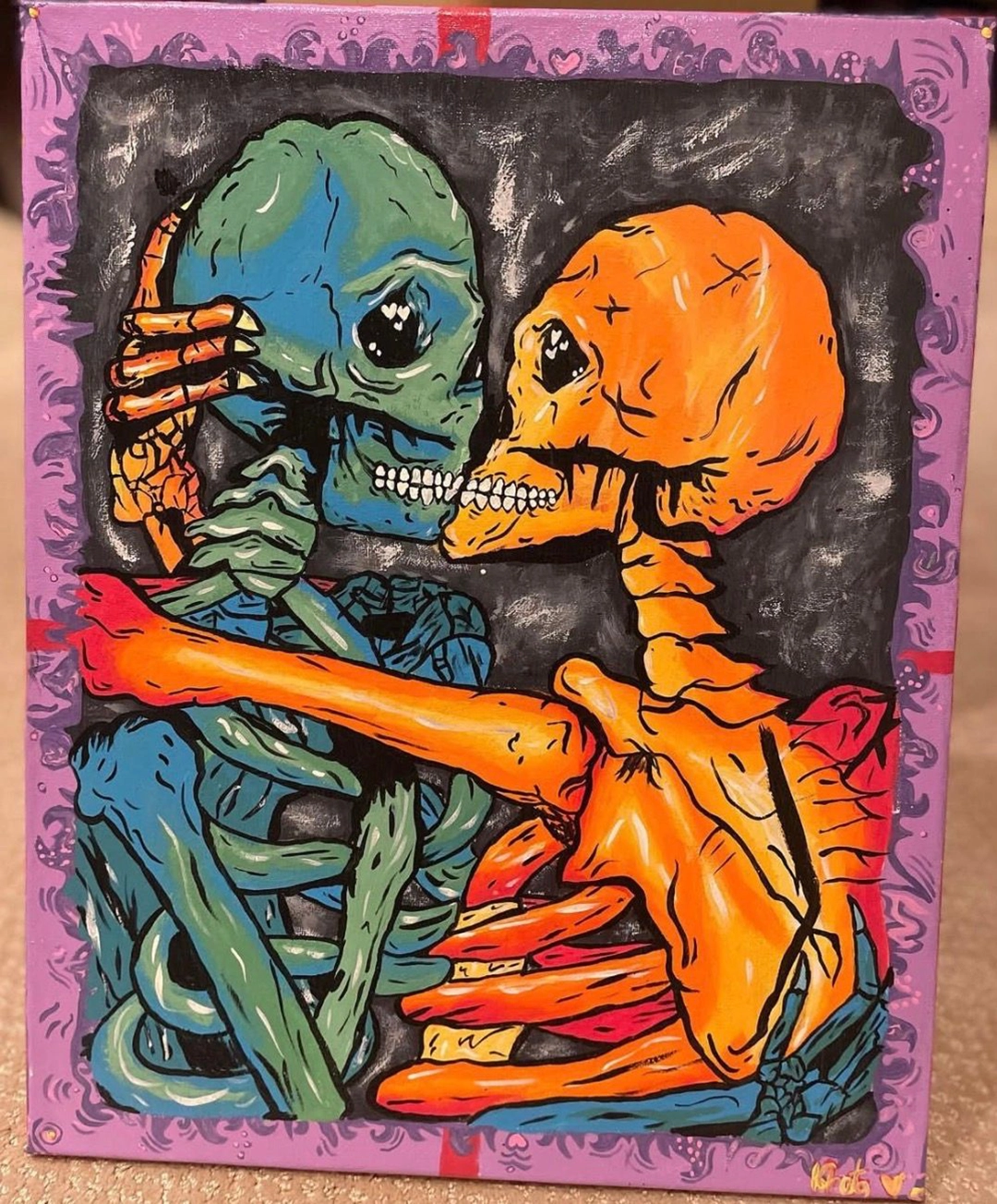 My artistic endeavor is an exploration of Pop Surrealism, showcasing a fascination where horror-esque aesthetics meet psychedelic, animated elements. Working primarily in acrylics, I am currently developing a series centered on the human skeleton—not as a symbol of mortality, but as a vibrant ""core"" that represents our shared internal architecture. I create for the sake of aesthetic discovery, seeking balance and beauty within the uncanny. My work reimagines the skeletal framework as a fluid, decorative form, blending the rigid nature of bone with psy-animated features and high-contrast palettes. By supporting my work through the Public Display Economy, you’re directly funding the professional-grade pigments and materials I need to turn these ideas into immersive gallery experiences. You're not just buying art; you're helping a local creator keep bringing her a vibrant yet slightly unconventional perspective to our art community. Thanks for keeping the story going.