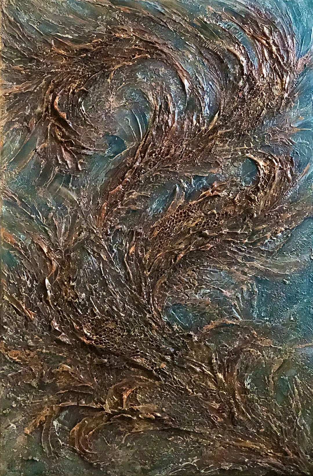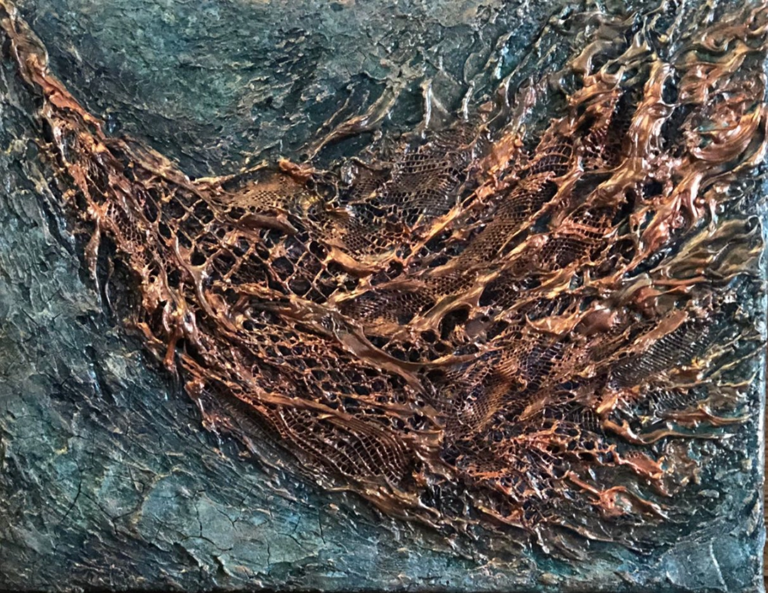 April Angeles is an award winning visual artist in Edmonton, AB. Though she dabbles with the use of different media in her artistic pursuits, she works mainly with acrylics, recycled materials, and graphite, and her art has been featured in various physical and online spaces. April’s abstract works incorporate recycled materials that she seeks to transform into pieces that convey stories, movement and emotion.