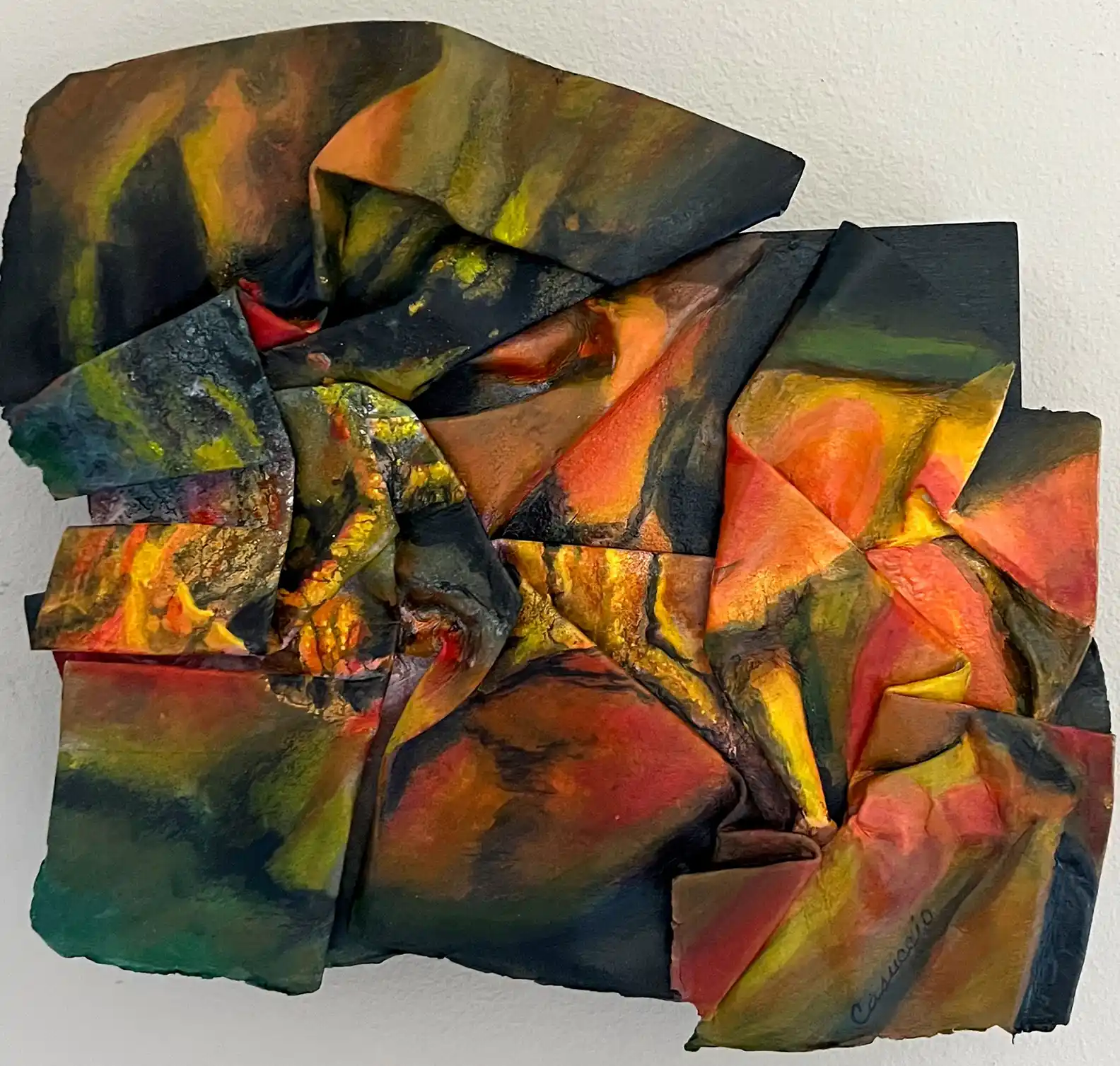 Carmela's work is driven by a commitment to originality and a desire to remain true to her inner vision. Her current series, Dimensional Realms, explores the interplay between the physical depth created by molded watercolor paper and the abstract dimension of space within each piece. Each artwork extends beyond the flat surface, creating a tangible landscape of vibrant colours with folds, ridges, and contours encouraging viewers to engage with the work from multiple angles, each offering a new perspective and deeper understanding of the piece's narrative.