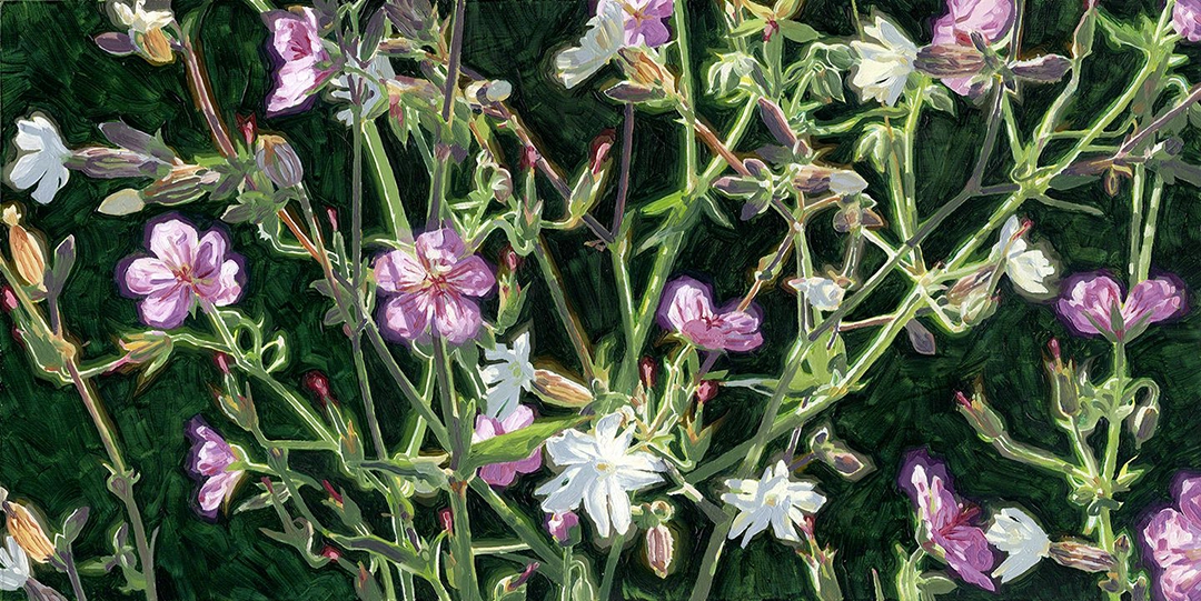 I’ve lived in Calgary all my life. I studied illustration at Alberta University of the Arts back when it was called ACAD. I enjoy hiking in desolate places, taking photos of light and patterns, concerts at the Calgary Philharmonic, reading actual books, making spreadsheets, movies that make me uncomfortable, fancy loose leaf tea, and sinking into bed at night with my true love.I focus on landscapes that I have walked through, moments of life that I see day to day, and animals that roam my urban habitat. I avoid boredom and repetition by depicting subjects through constant experimentation with form and technique. In this way I aim to show the endless variety of what is in the world, and how things are experienced, even within my limited view.
