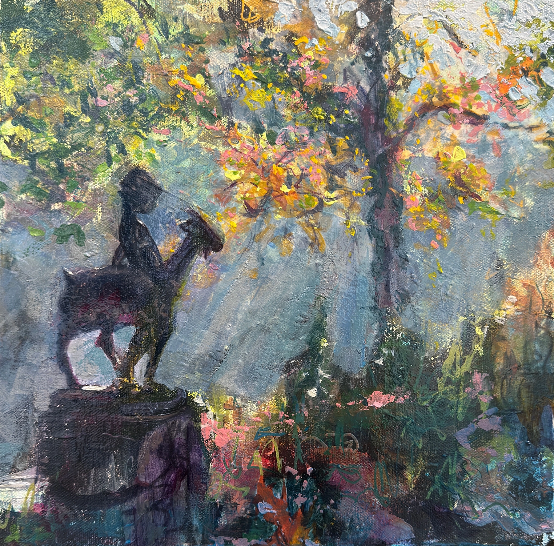 Jean Parker is a Canadian painter, living in both Calgary and Prince Edward Island. Jean is an impressionist painter who loves to paint on canvas. She selects her medium - acrylic, oil, or mixed media for her painting based on the story she is telling. Jean participates in multiple juried exhibits and shows, both live and online, and has Canadian and International Collectors. Jean was involved in starting the Calgary Artists Studio Tour to help grow art awareness in Calgary.Have you ever been stopped short by that amazing sunset or a moody, misty day? Jean Parker is intrigued by the forces that collide to create these beautiful moments. For her these “minor cord” moments of life generate such vibrancy, mood and mystery.To paint this interplay and convey the feelings these moments elicit, her art encompasses layers of movement, texture, bold colours and lines. Jean’s current body of work is exploring the Play of Light.