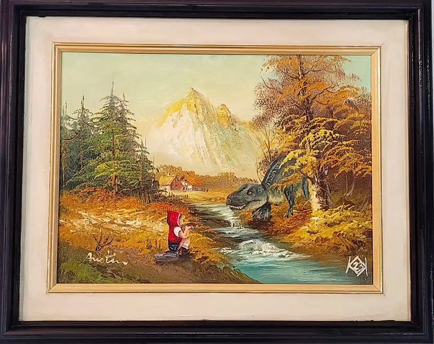 A lifelong thrifter and artist, Kerrie is self-taught and focuses on the repair of damaged vintage paintings, then adds a story to give them new life.