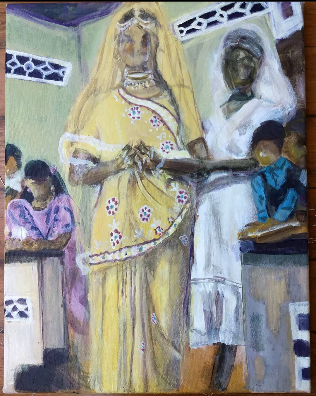 Kira Chankasingh’s imagery serves as a vessel of remembrance and forgetfulness. By revisiting family photos, she creates a vortex of ancestral experience. Combining the past while painting in the present, she creates her own relationship to the subject, thus creating a new story to reflect on the future. Within her multiplicities of identity, Kira explores how the mystery of different environments impact culture and people, especially during times of isolation. Although she considers herself a multidisciplinary artist, Kira‘s paintings reveal her passion for the human figure.Queer Alberta Artist, Kira Chankasingh is the daughter of immigrant parents from Trinidad and Tobago. A student at Alberta University of the Arts and a graduate from Emily Carr University, she was born in Yellowknife. Her early life was impacted by the natural world travelling with parents to visit family in Edmonton and Trinidad.