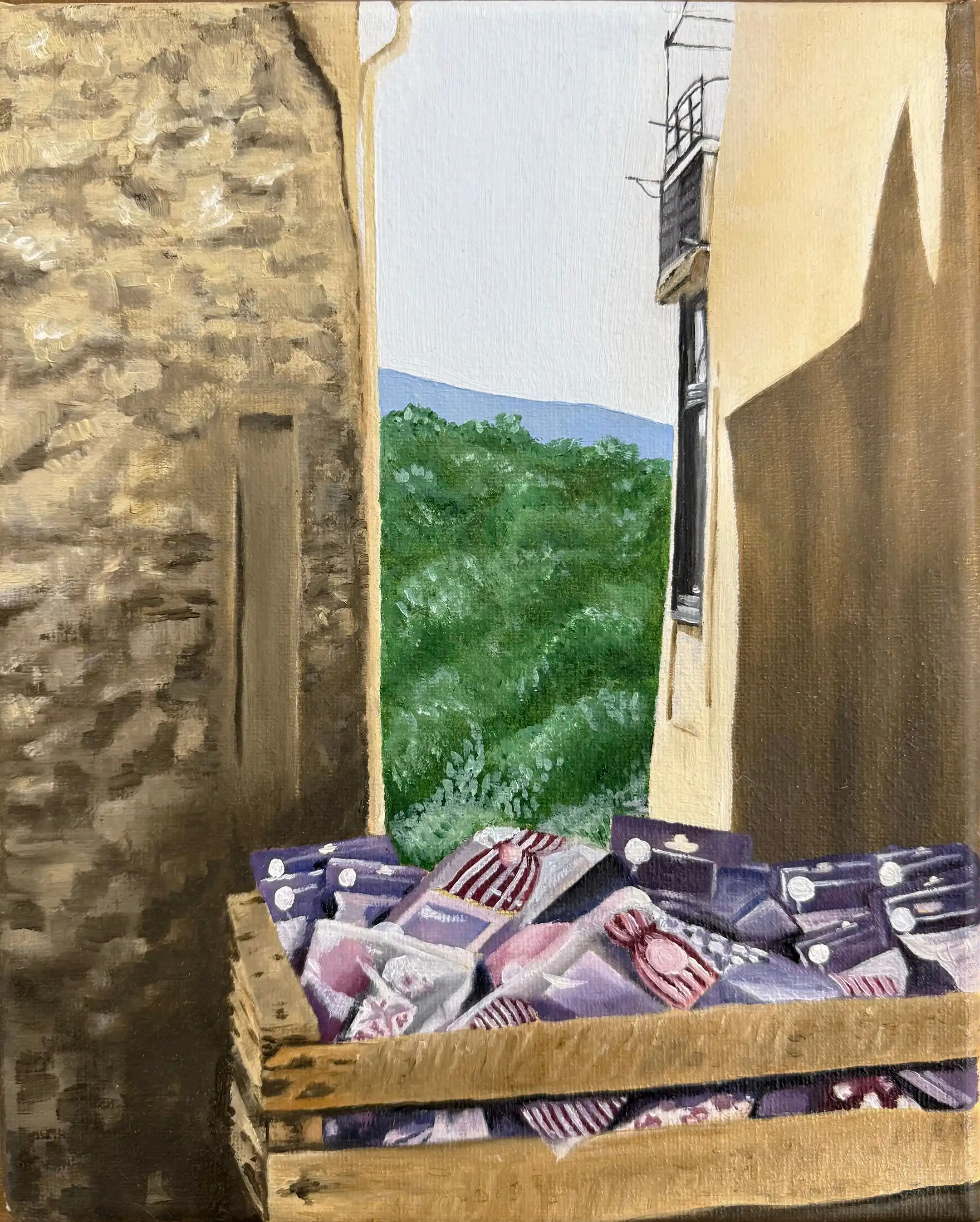 Through her work, Krystelle aims to spark critical reflection on our current lifestyle and outlook in order to tackle overconsumption. Her art invites others to slow down and appreciate the little or forgotten things that make our lives great. Her paintings often depict small accents of everyday life, focusing on the beauty of what we can take for granted. Although inspired by her own surroundings and culture, she aims to romanticize absolutely everything.
