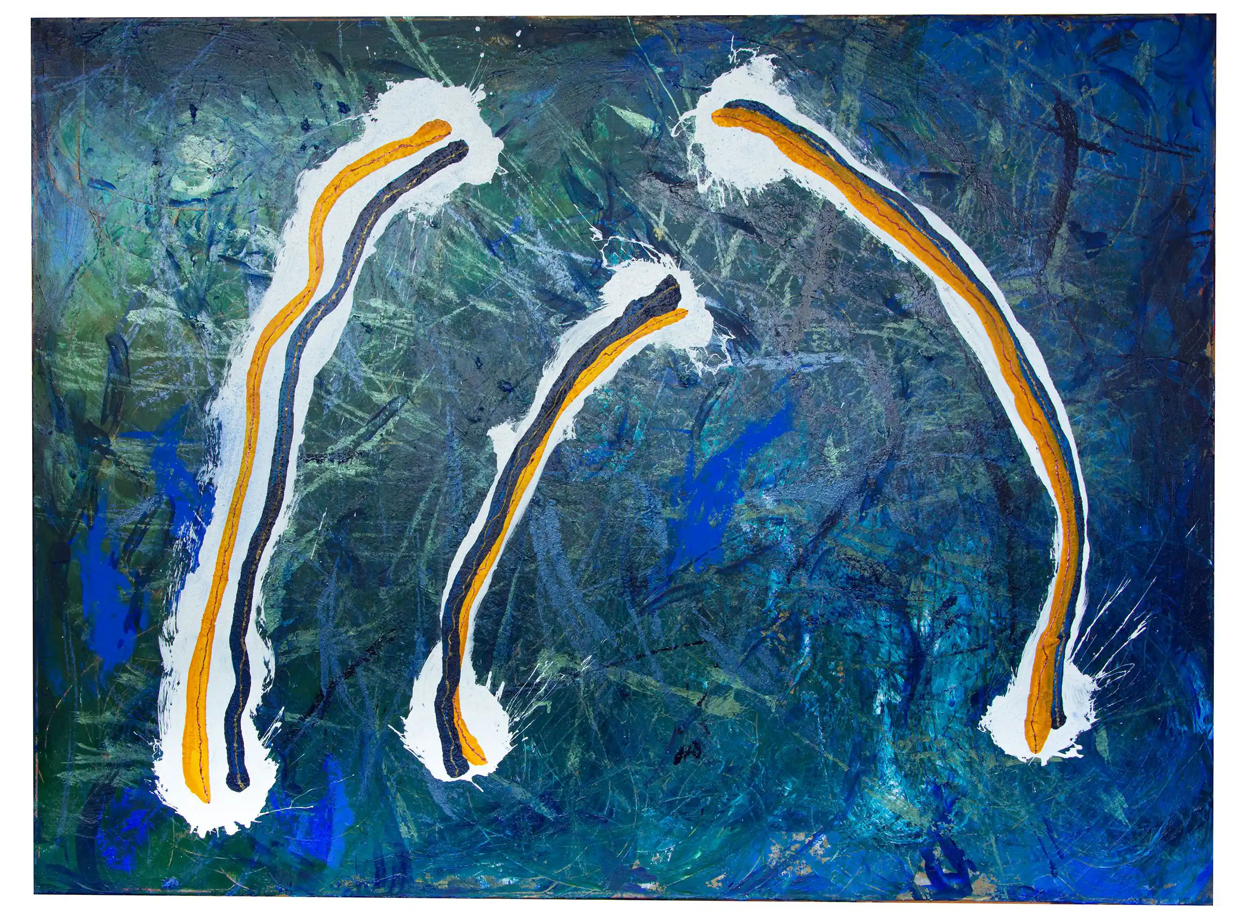 Working primarily on canvas with various mediums, she finds her greatest inspiration in nature. The lake near her Toronto studio offers a quiet space for reflection, where the flow of water and light continue to influence her creative process.