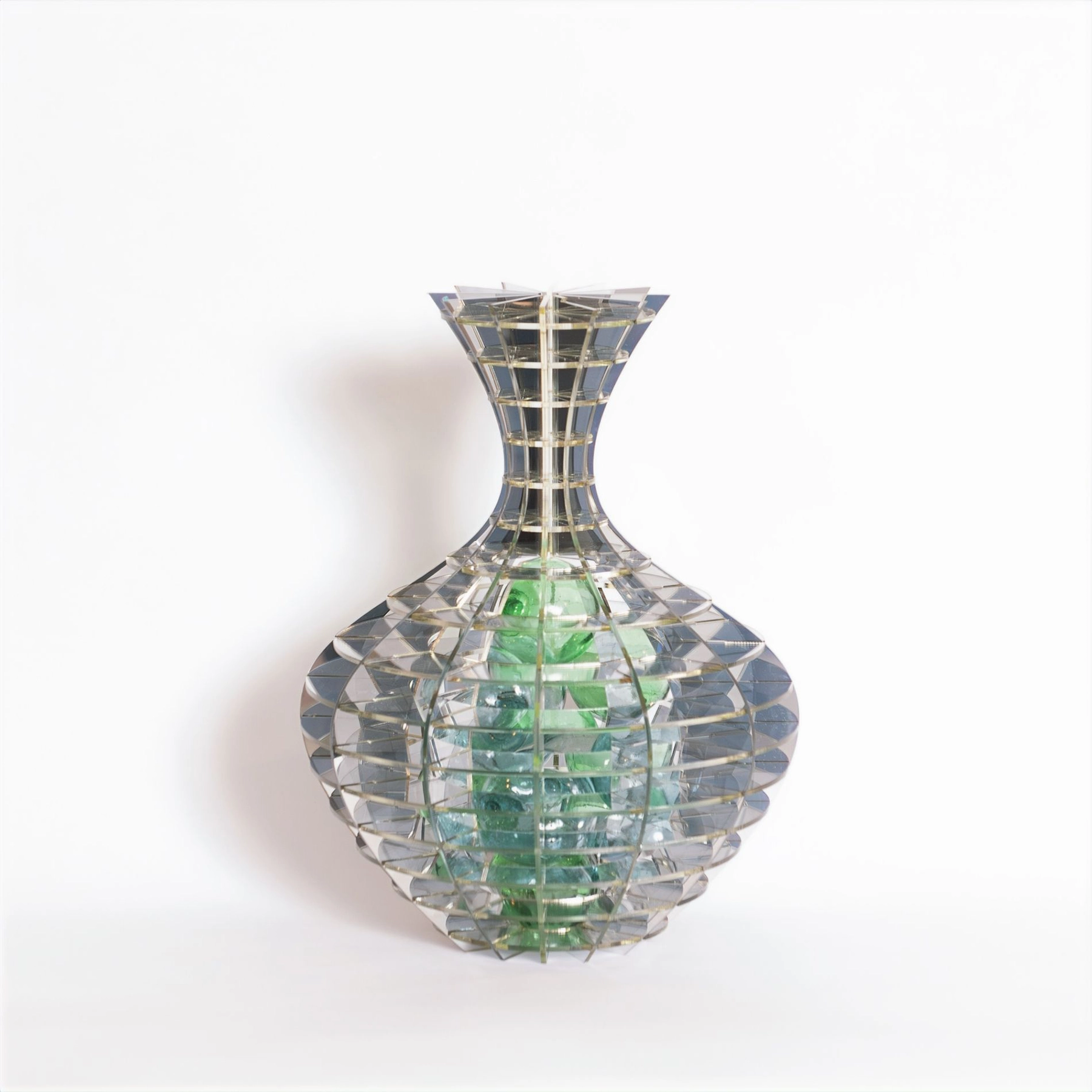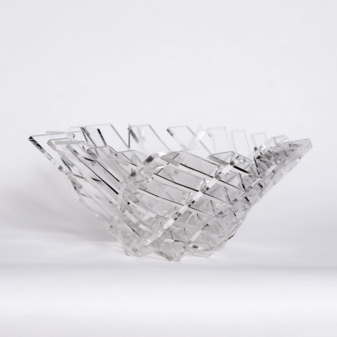 I am a Toronto-born artist currently living and working in Ottawa, Ontario. I received a Bachelor of Fine Arts from NSCAD University in 2017, majoring in Jewellery and Metalsmithing with a minor in Art History. Alongside my studio practice, I have pursued training in gemmology, earning credentials from the Canadian Gemmological Association and the Gemmological Association of Great Britain (FGA, DGA).While my formal training is rooted in jewellery and metalsmithing, my practice has expanded into sculptural work that engages with material, light, and perspective. Using enamel, acrylic, and glass, I layer translucent and reflective surfaces to create an effect that shifts with light and movement. Inspired by optical illusions and the limits of human visual perception, my work invites viewers to question how colour, depth, and reflection are interpreted.