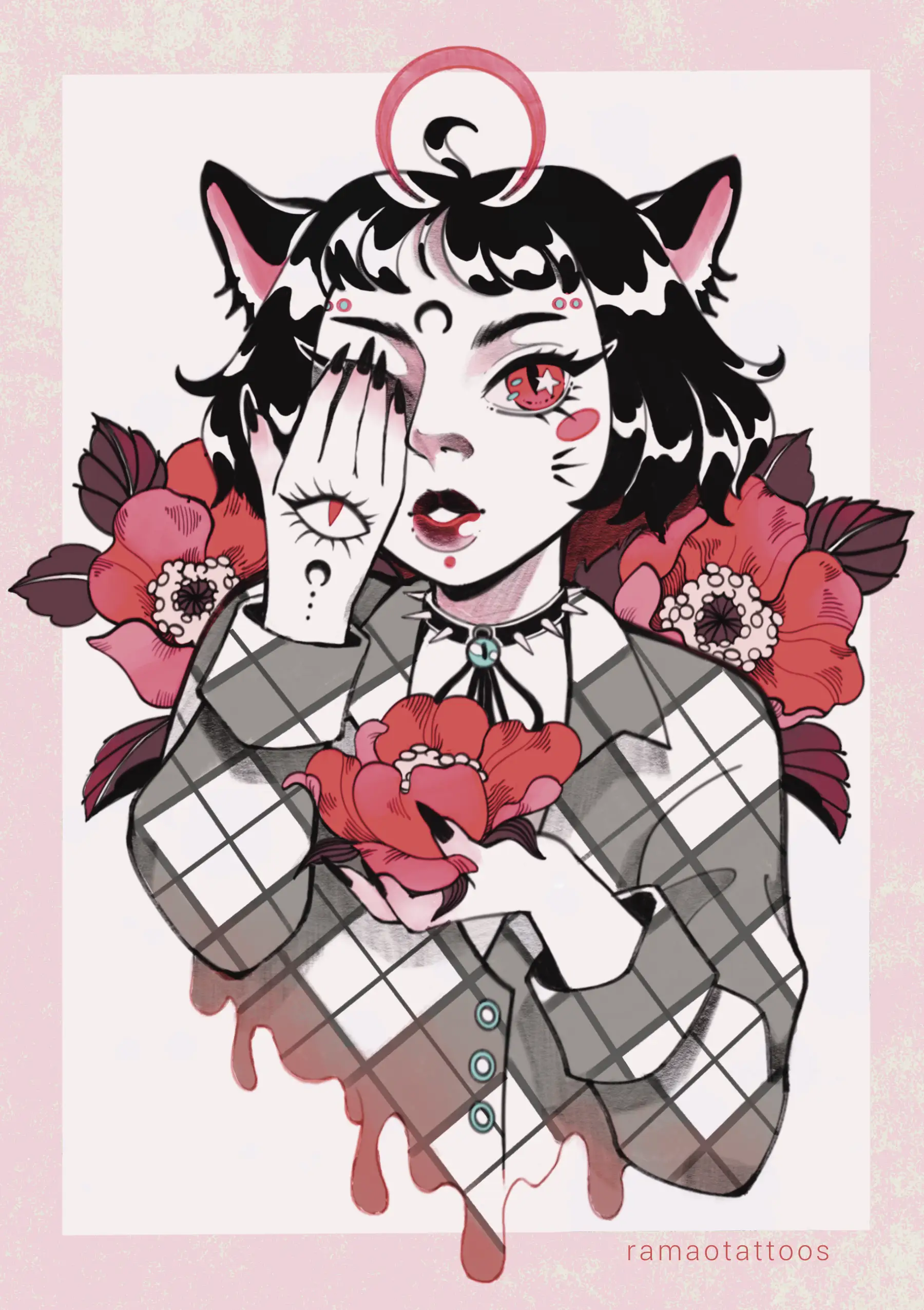 Hi my name is Nina, also known as Ramaotattoos! I’m a Toronto-based illustrator that specializes in nerdy and spooky subject matter. This artistic touch also translates into my tattoo work. My colourful yet ominous illustrations aim to capture the essence of telling a story. I hope that when you look at my work, you can create a story of your own.